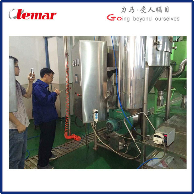 2015年5月16日湖南一制藥公司的張工和徐公一行到我公司進行中藥制粉實驗,經(jīng)過40分鐘的等待,紅糖色的中藥液體很快變成了細膩的紅糖色粉末,色澤與中藥液體相同,味道也無差異,口感非常棒,得到了客戶的好評。